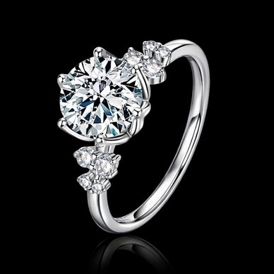 Elegant and radiant, the Celeste Engagement Ring is a breathtaking symbol of everlasting love. At its center, a brilliant round-cut moissanite shines with exceptional fire and clarity, capturing light from every angle. Delicate accent stones grace the band, adding a soft, romantic sparkle that enhances the beauty of the centerpiece without overwhelming it.